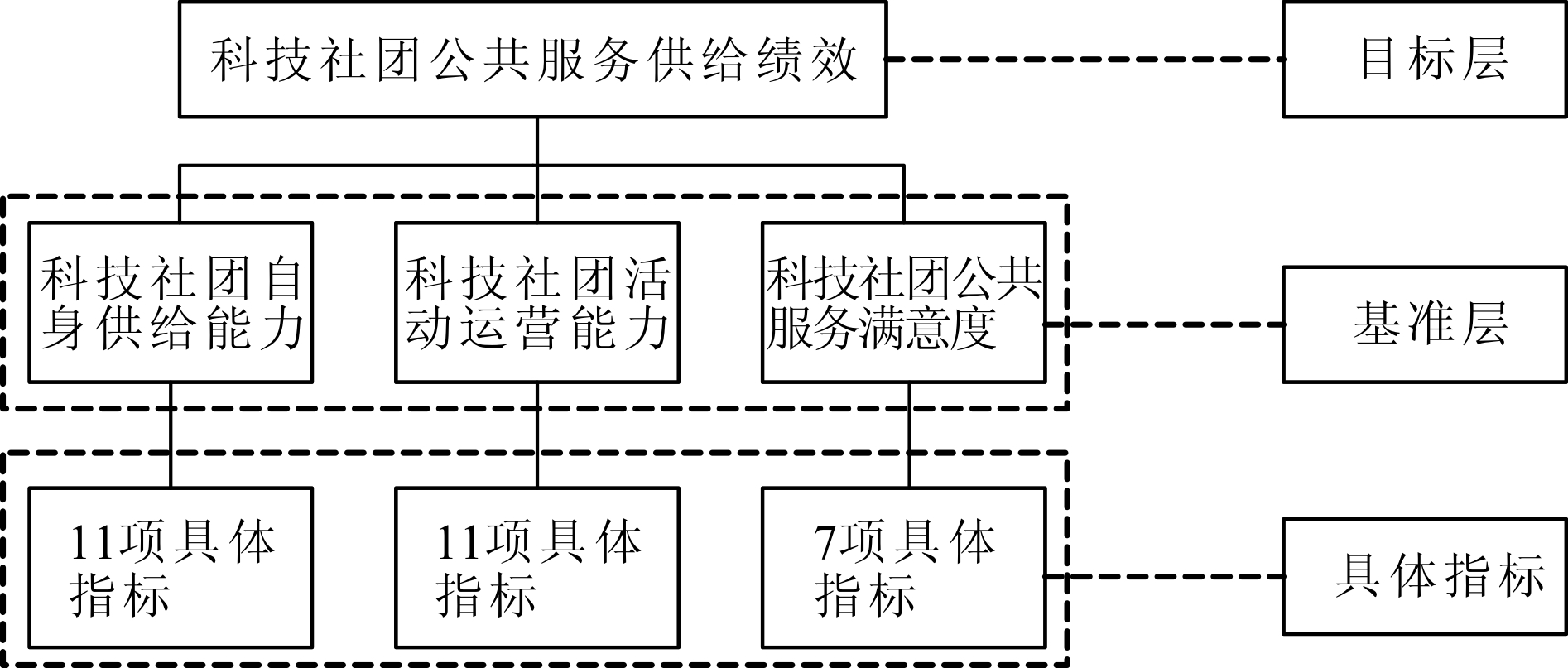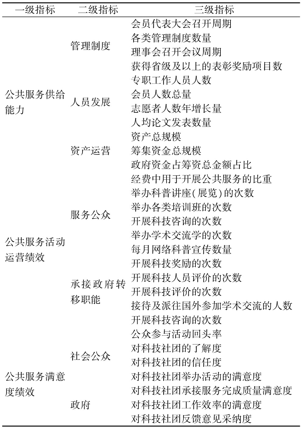 经过调研分析,结合对现有文献的深入研究及专家意见,本文从科技社团参与公共服务的自身供给能力、科技社团提供公共服务的活动运营能力及科技社团提供公共服务的满意度3个维度进行绩效评价。