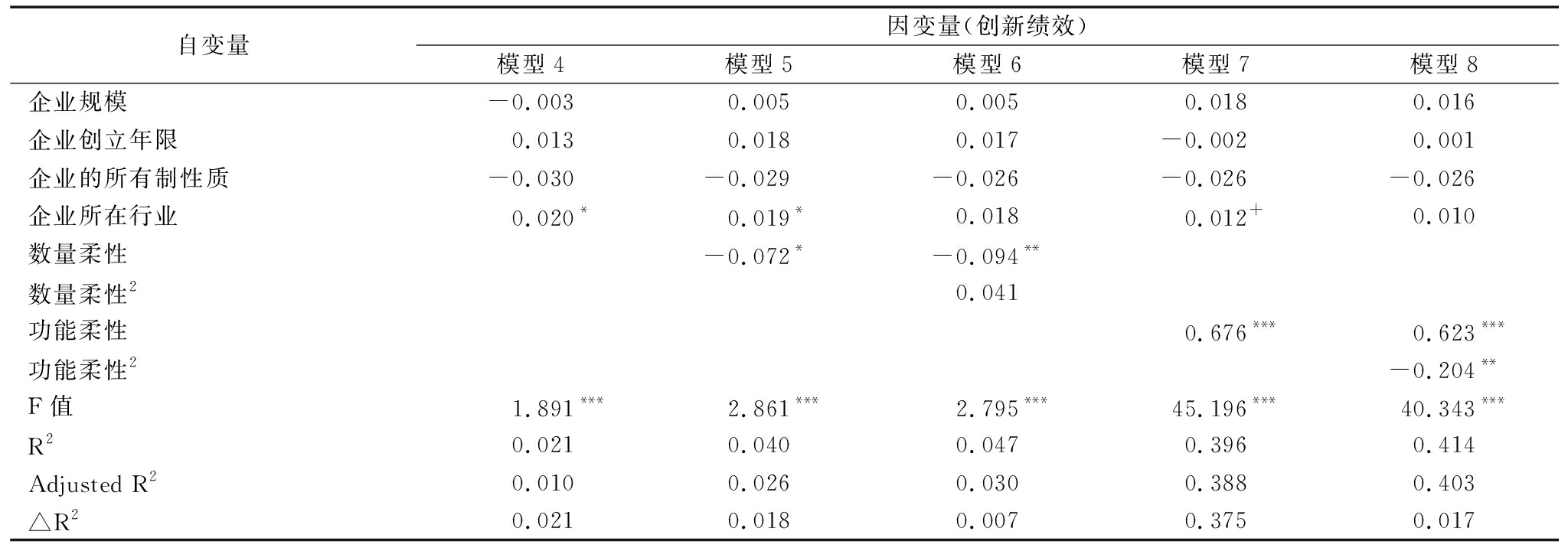 表5人力资源双元柔性能力对创新绩效的回归分析