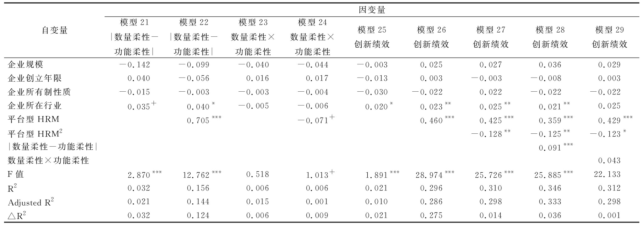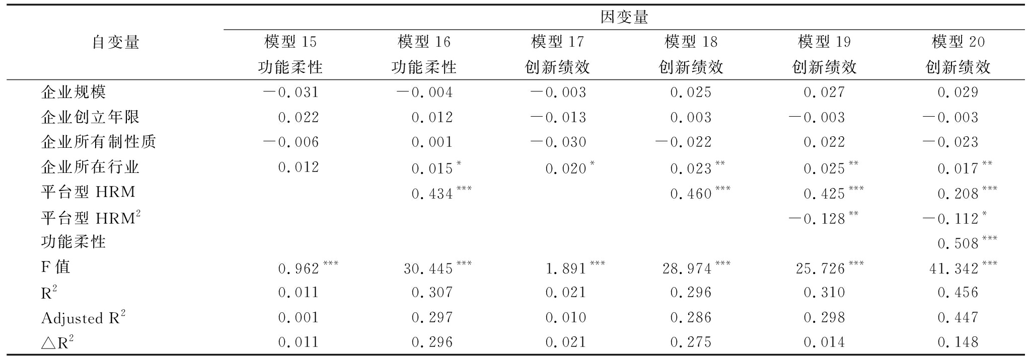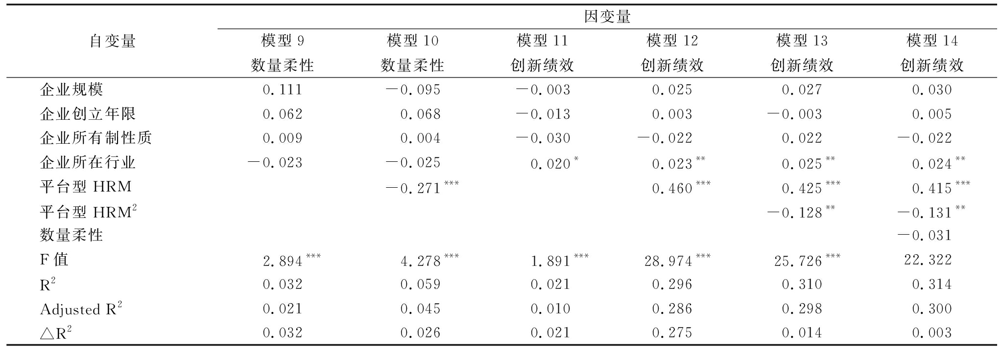表4平台型HRM对创新绩效的回归分析