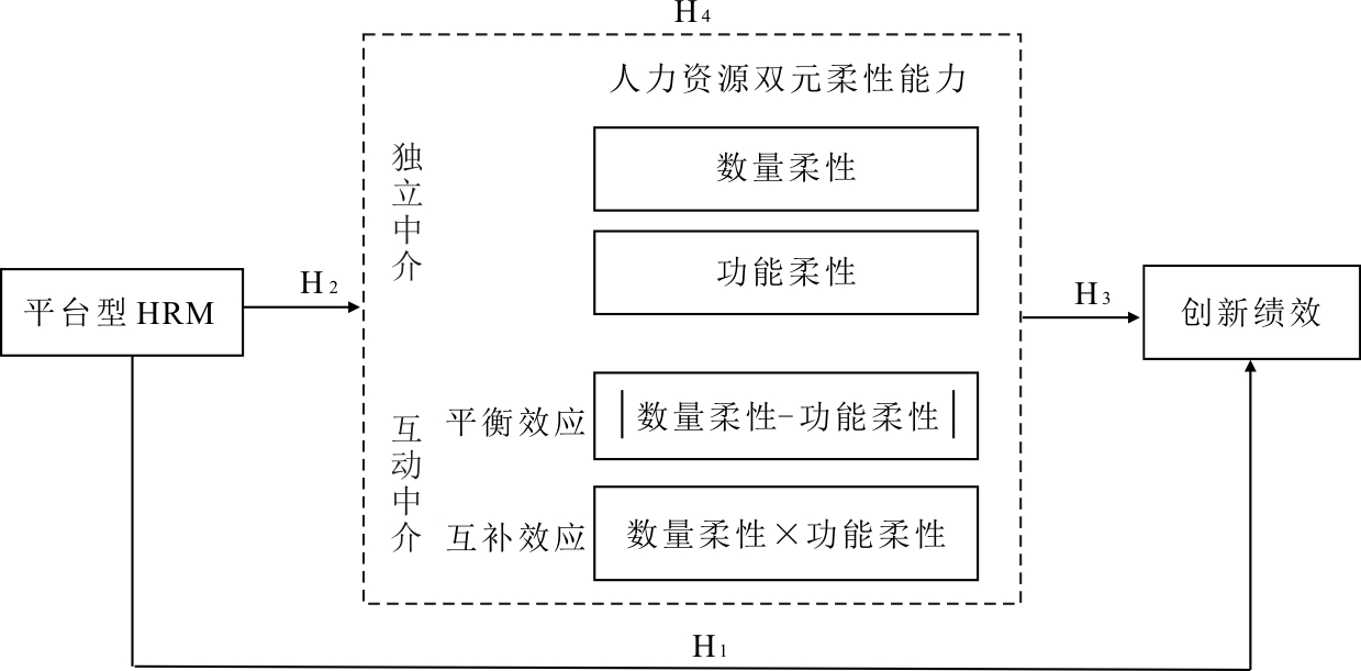 H4:人力资源双元柔性能力在平台型HRM与组织创新绩效之间起中介作用;