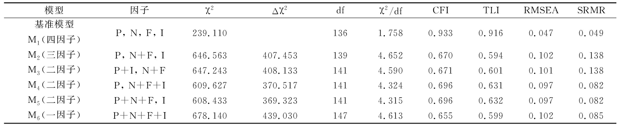 表2变量区分效度验证性因子分析结果