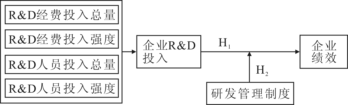 在《“十三五”国家科技发展规划》中,以企业为主体、市场为导向的技术创新体系更加健全,高等学校、科研院所治理结构和发展机制更加科学,军民融合创新机制更加完善,国家创新体系整体效能显著提升是我国“十三五”科技创新发展目标。全国科技经费投入统计公报指出,2015年我国研发经费投入总量迈上1.4万亿的新台阶,研发经费投入强度达到2.07%,研发投入规模和投入水平实现新突破。其中,2015年企业投入研发经费达10 881.3亿元,比上年增长8.2%,对全社会研发经费增长贡献达71.1%,成为全社会研发投入的引领者,凸显了企业在国家创新体系中的主体地位。企业作为以营利为目的经济单位,绩效是其追求的根本,但企业R&D投入能否有效转化为企业绩效(企业利润)?企业研发管理制度能否对企业R&D投入与其绩效的关系起调节作用?上述问题有待实证分析。实务界与理论界对研发投入与企业绩效关系已经进行了诸多研究。Griliches[1]研究发现,R&D投入和专利技术能够提升企业价值。随着研究不断深入,由于某些情况下R&D投入与企业绩效存在显著正相关或者负相关,甚至可能表现出非显著相关,学者们开始对二者关系的确定性产生质疑。因此,部分学者侧重于分析影响上述两者关系的其它因素。与企业性质和活动相关的各种内外部条件,如企业规模、高管激励、管理层权力等逐步进入研究视野,成为调节R&D投入与企业绩效关系的重要变量。目前,少数研究者将研发管理作为一个调节变量,验证其对R&D投入与企业绩效关系的影响。有数据表明,在全球技术革新成果中,只有不到10%的R&D投入最后转化成了现实生产力,即商业利润,这显然是由企业不完善的研发管理所致。有效的研发管理能够提高科学技术与各种资源利用效率,对研发中的各种要素与资源进行统筹协调,从而将企业研发投入转化为企业经营效益。同时,随着全球化进程加快和信息化程度快速提升,企业原有人员、知识与研发能力受到外部新技术、新机会的巨大冲击,企业R&D投入转化为企业商业利润的不确定性越来越大,而企业研发管理在一定程度上能够缓解外部环境带来的影响。企业研发管理是指企业在研发活动过程中,对所涉及的各个基本要素进行的协调活动,内容包括制度建设、流程塑造、团队培养、绩效考核、风险评估、成本控制、项目和知识管理等[2]。企业研发管理的首要内容与关键环节在于企业研发管理制度的建设和完善。制度作为约束人们行为的规则,能够有效抑制群体活动中可能出现的任意行为和机会主义行为。研发管理制度的建立能够为企业研发行为提供制度保证,有效降低研发管理过程中的不确定性,从而为实现企业经营收益提供基本服务。