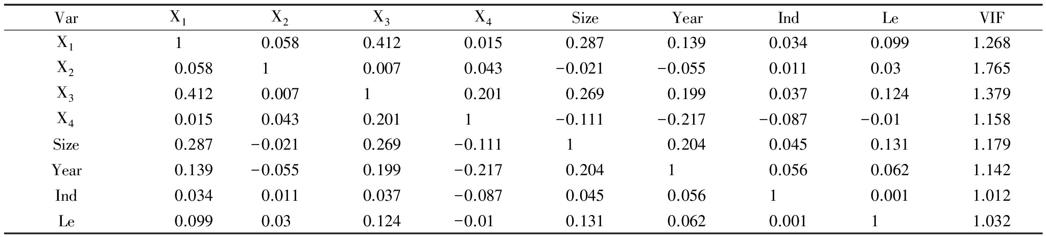 (1)多重共线性检测。自变量之间的多重共线性会对回归方程估计造成很大影响。因此,在对多个变量进行回归分析时,首先需要对自变量之间的多重共线性问题进行检测。在实际研究过程中,各个解释变量之间很难完全独立,一定程度的相关并不会对研究结果造成严重影响。如果变量的Person相关系数超过0.8,表示可能存在多重共线性问题,还需要作进一步检测。同时,可以通过方差膨胀因子(VIF)进行变量多重共线性检测。由表3可知,各变量之间的Person相关系均小于0.4,仅个别指标之间的相关性大于0.4但小于0.5,表明各变量之间的相关性并不强。其次,各变量的VIF值介于1.012~1.765之间,平均值远低于可接受水平10,即变量之间的多重共线性较弱。因此,各变量之间的多重共线性问题并不存在。