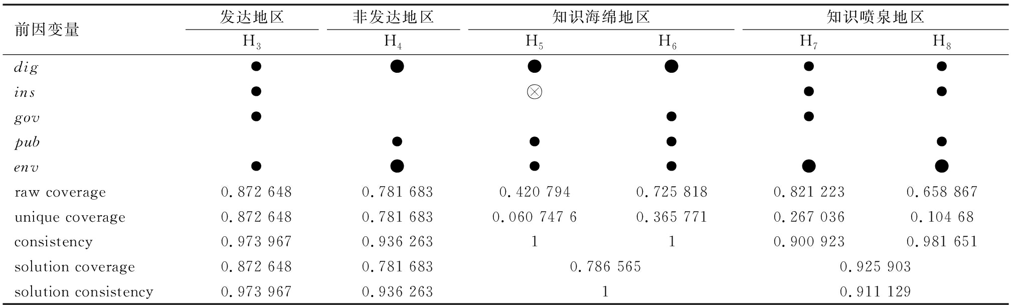 前因变量发达地区H3非发达地区H4知识海绵地区H5H6知识喷泉地区H7H8dig●●●●●●ins●●●gov●●●pub●●●●env●●●●●●raw coverage0.872 6480.781 6830.420 7940.725 8180.821 2230.658 867unique coverage0.872 6480.781 6830.060 747 60.365 7710.267 0360.104 68consistency0.973 9670.936 263110.900 9230.981 651solution coverage0.872 6480.781 6830.786 5650.925 903solution consistency0.973 9670.936 26310.911 129