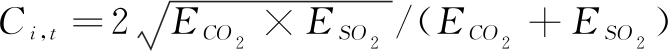 本文参考PRCEE对协同效应的论述,将减污降碳协同效应定义为同时减少CO2和SO2等大气污染物排放,进而实现双重环境效益的协同作用。本文采用减污效率、降碳效率分别衡量控制污染物和碳排放绩效,进一步采用两者耦合协调度衡量减污降碳协同效应。指数得分越高,说明减污降碳协同效应越好。