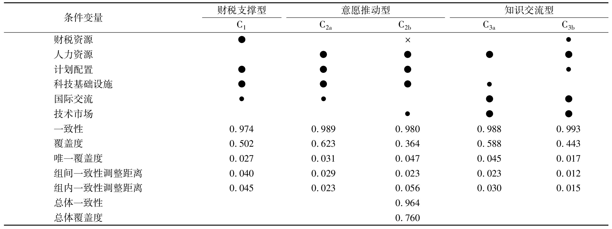 注:●表示核心条件存在,●和×分别表示边缘条件存在和缺失,空格表示条件有无均可,下同