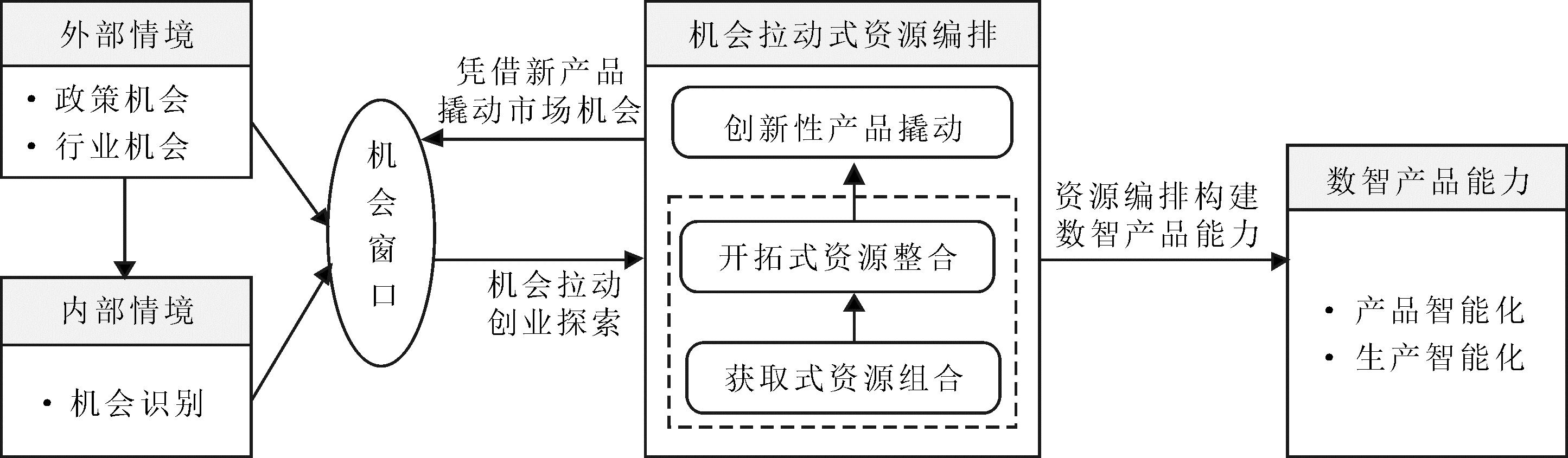 图1 机会拉动式资源编排构建数智产品能力的过程
