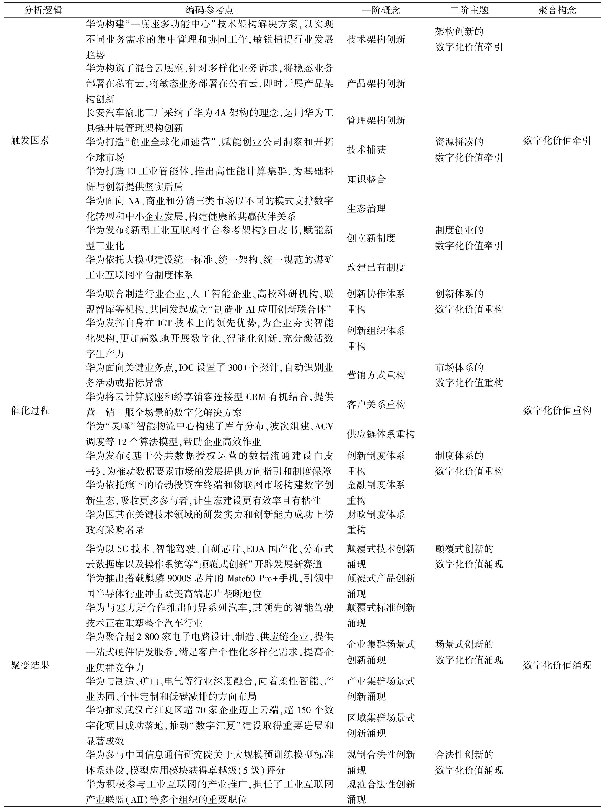 表3 华为牵引实现数字化价值涌现的编码参考点与编码结果