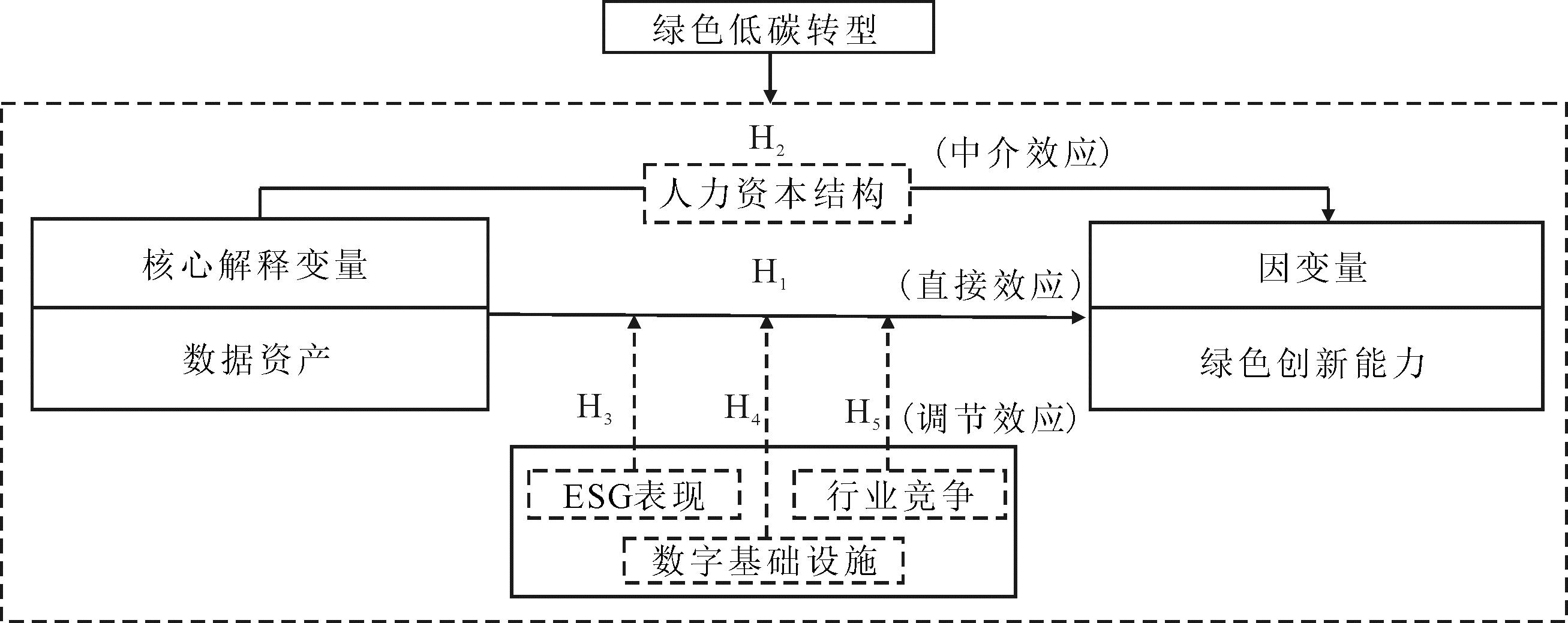 H2:企业人力资本结构在数据资产提升企业绿色创新能力的影响路径中发挥中介作用。