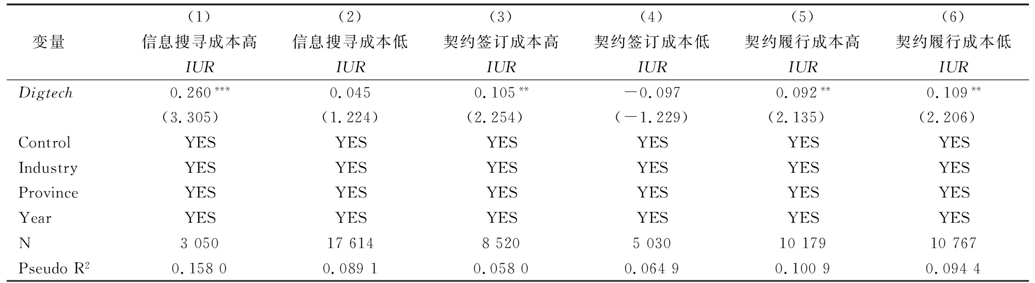根据上述关于影响机制的阐述,本文认为数字技术应用通过降低交易成本(如信息搜寻、契约签订和履行等成本)促进产学研合作。鉴于企业各类交易成本难以直接量化,本文采用分组回归法对上述机制进行间接检验。