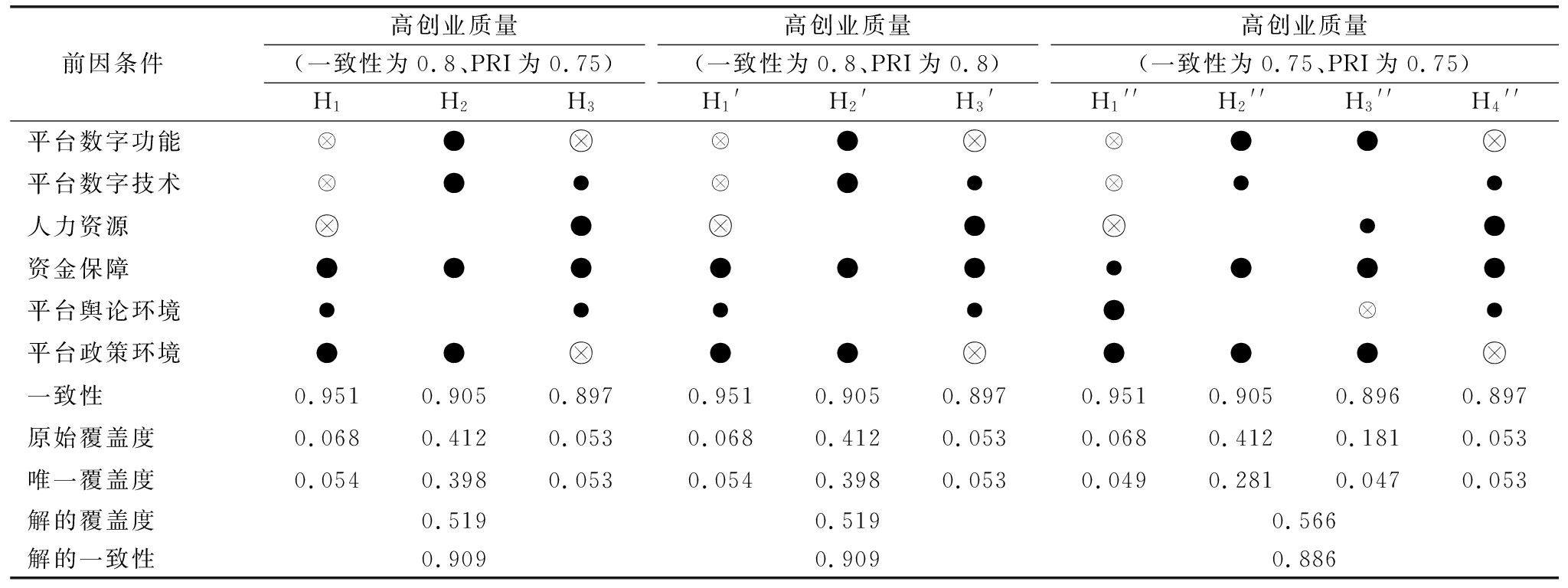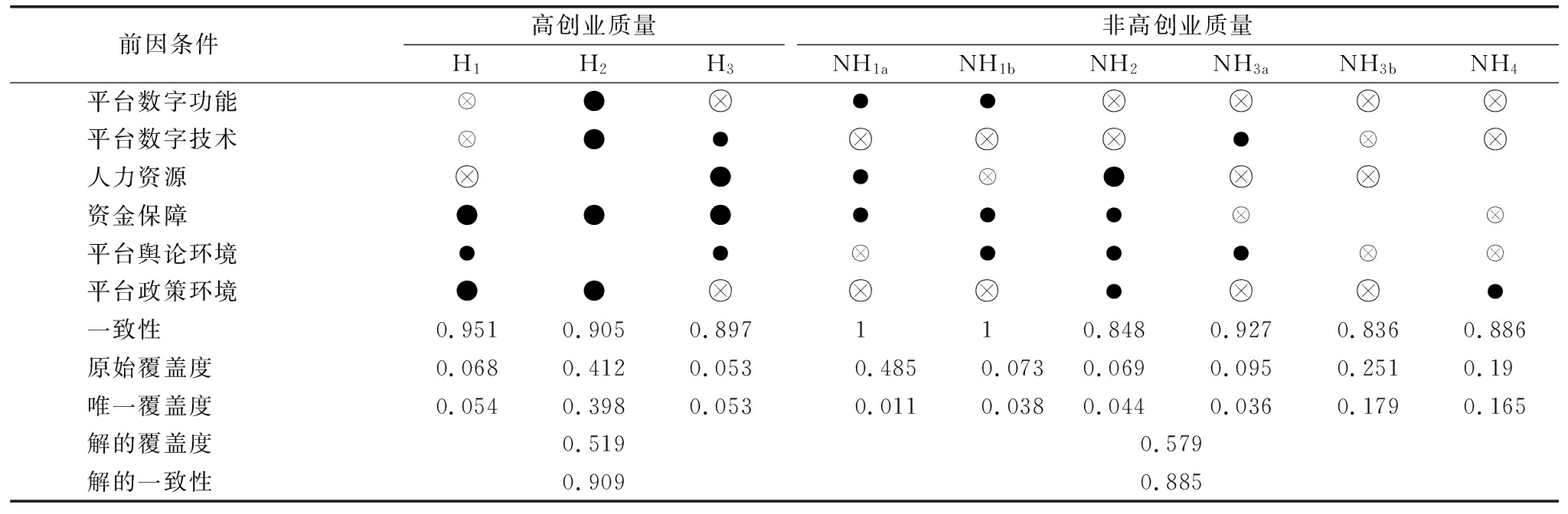 (1)任何单一因素均不是构成数字平台高质量创业的必要条件,数字平台创业质量受多方因素的共同影响,而非某个因素的作用结果。