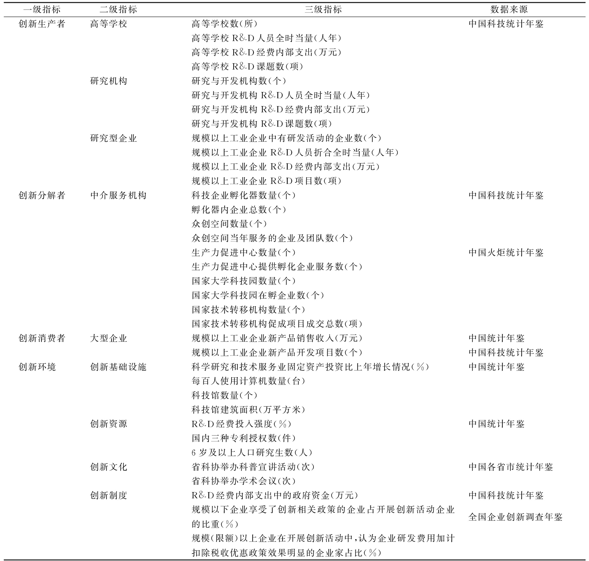 表1 创新生态营造评价指标体系