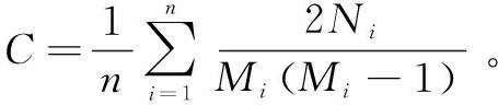 其中,Mi表示与节点i相连的节点数,Ni表示节点i的实际连接边数;特征路径长度