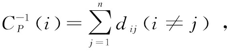 接近中心度是指一个节点与网络中其它节点的平均距离,反映该节点在网络中的接近程度,通过求该节点与所有其它节点的最短路径距离之和的倒数得到[1,6]。对于由n个节点构成的网络,节点i的接近中心度为
