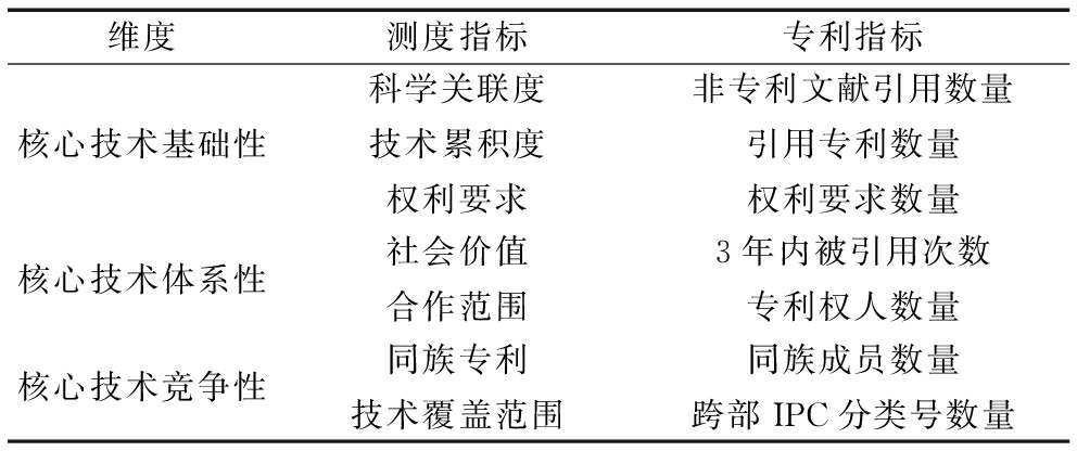 维度测度指标专利指标核心技术基础性科学关联度技术累积度权利要求非专利文献引用数量引用专利数量权利要求数量核心技术体系性社会价值合作范围3年内被引用次数专利权人数量核心技术竞争性同族专利技术覆盖范围同族成员数量跨部IPC分类号数量