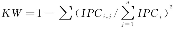 式中,IPCi,j表示第i个企业第j个大组分类数量,IPCj表示观察数据中第j个指标数量。大组层面专利分类号相差越大,表明企业知识基础宽度越广。