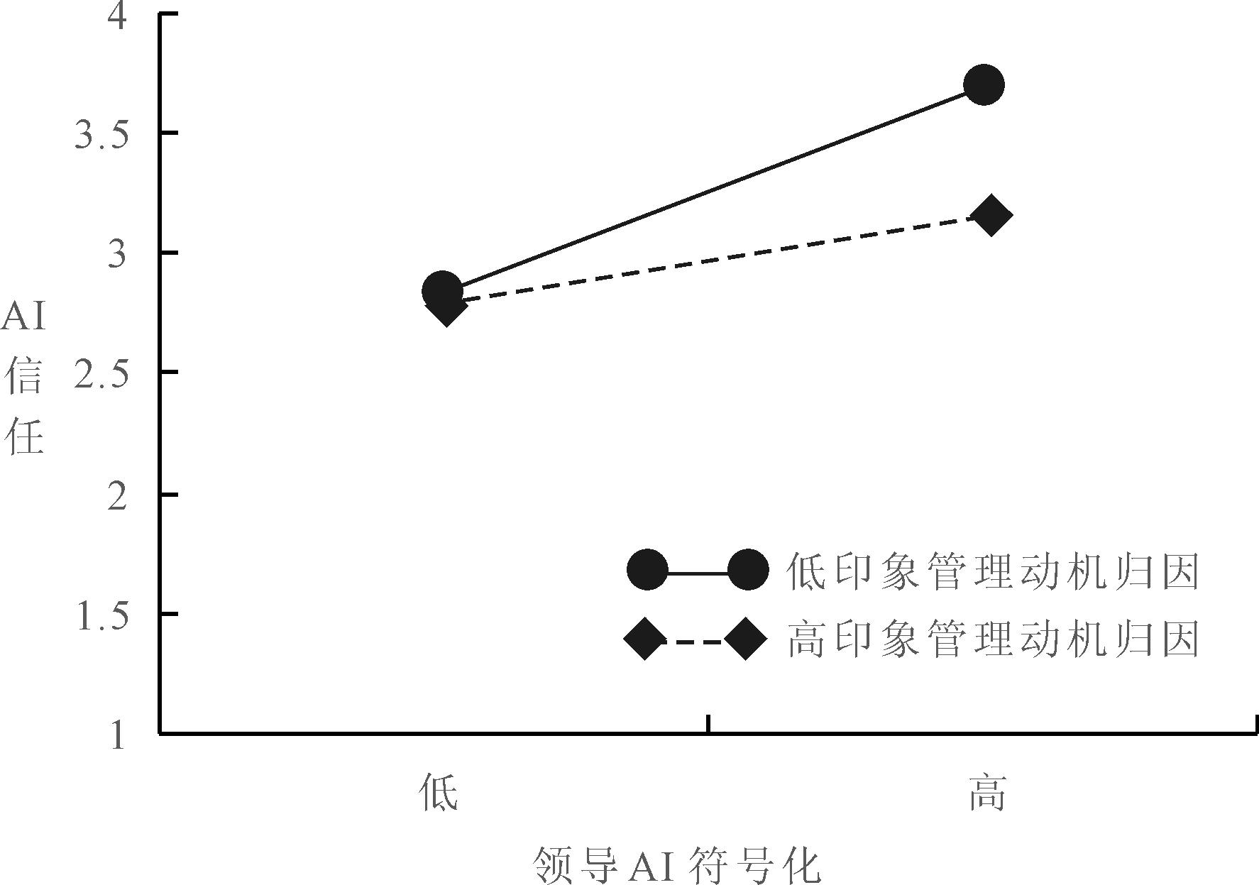 Fig.4 Moderating effect of impression management motivation attribution on the relationship between leaders′ AI symbolization and AI trust