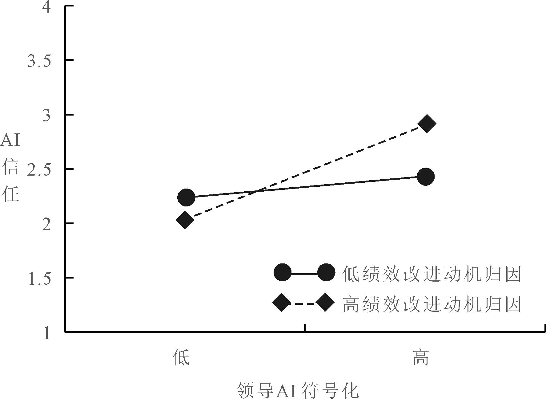 图3 绩效改进动机归因在领导AI符号化与AI信任之间的调节作用