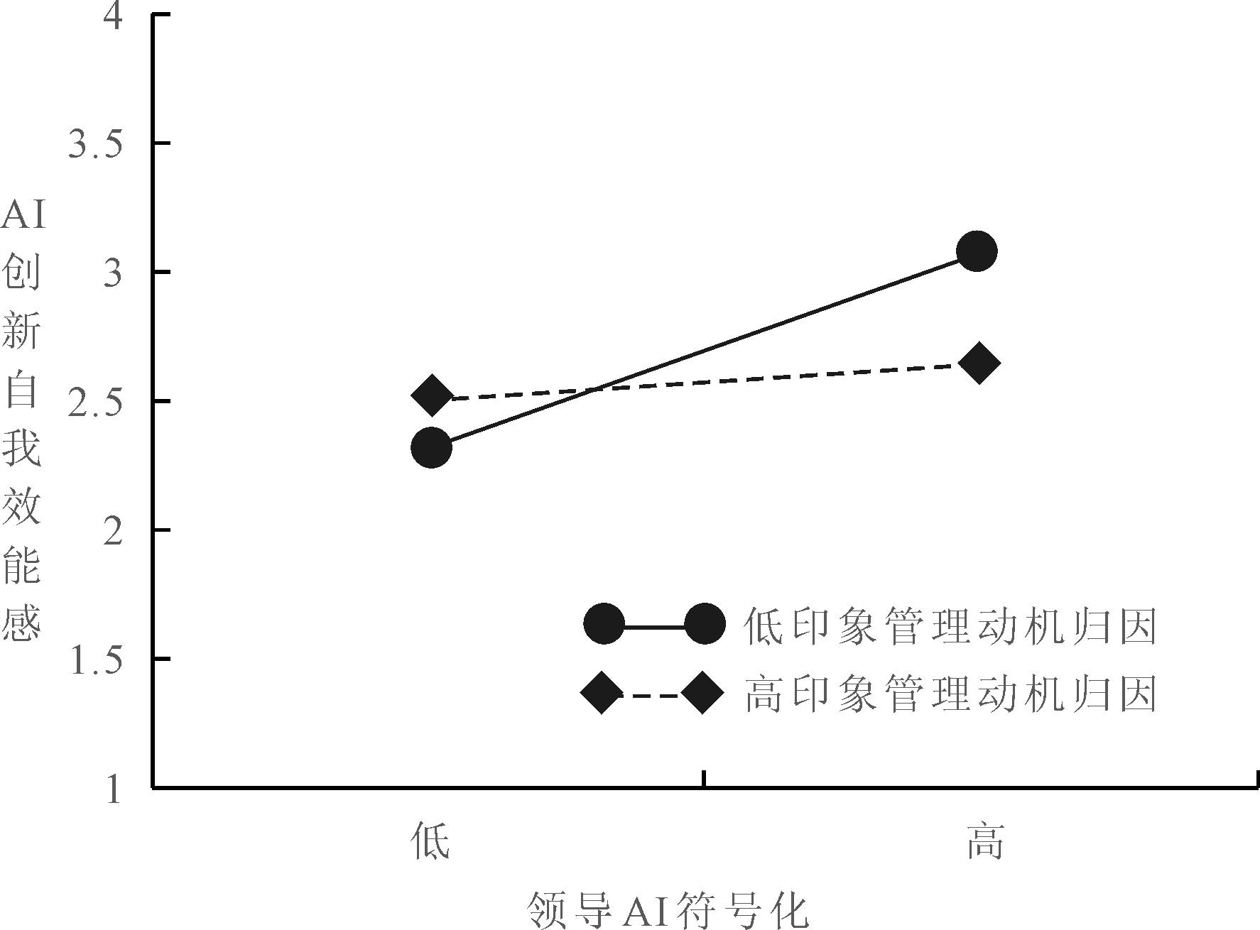 Fig.5 Moderating effect of impression management motivation attribution on the relationship between leaders′ AI symbolization and AI innovation self-efficacy