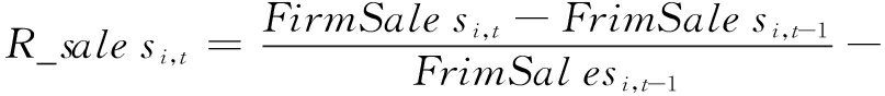为检验被解释变量的稳健性,本文采取组织韧性的另一种衡量方式进行稳健性检验。组织韧性的构建成果不仅表明企业在逆境中的稳定性,也关系企业在“VUCA”环境下的长期成长能力[26]。参考Oritz-De-Mandojana[22]等的研究,本文通过主营业务收入衡量企业的绩效成长。测度方式如式(5)所示,其中R_sales为以绩效成长性衡量的组织韧性,FirmSales为企业主营业务收入,N为企业所在制造业 (证监会2012版行业分类)的企业总数。表6显示前文结论仍然稳健。