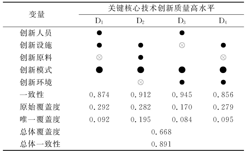 表9 环节内关键核心技术创新质量高水平组态分析结果