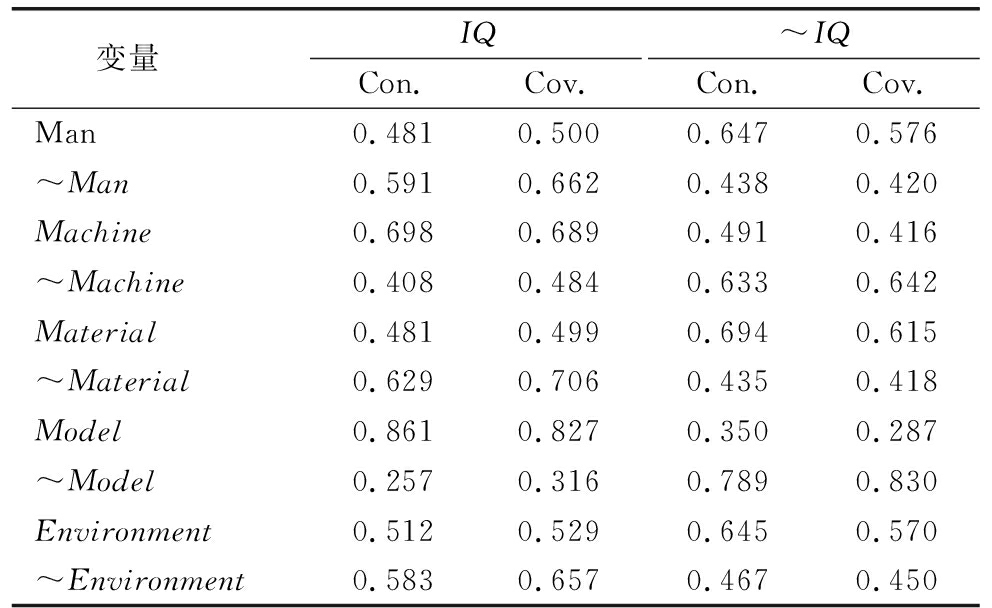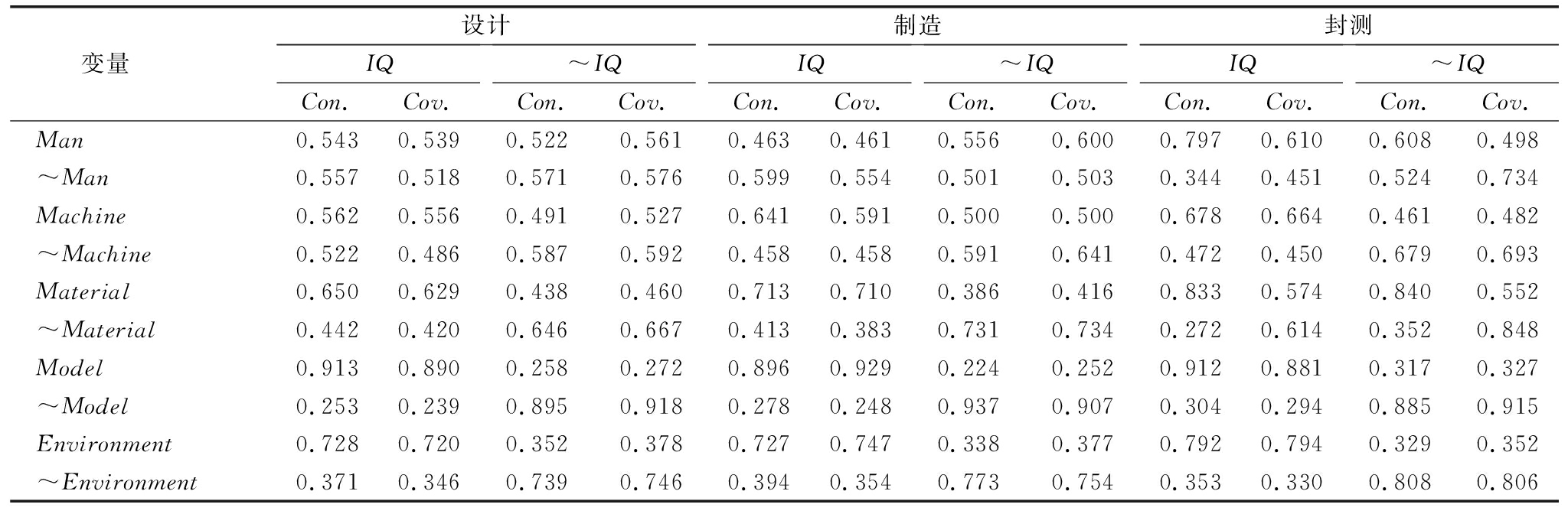 变量 IQCon.Cov.~IQCon.Cov.Man0.4810.5000.6470.576~Man0.5910.6620.4380.420Machine0.6980.6890.4910.416~Machine0.4080.4840.6330.642Material0.4810.4990.6940.615~Material0.6290.7060.4350.418Model0.8610.8270.3500.287~Model0.2570.3160.7890.830Environment0.5120.5290.6450.570~Environment0.5830.6570.4670.450