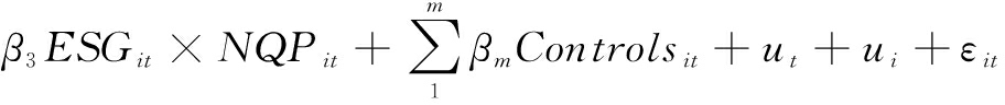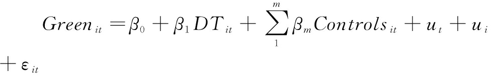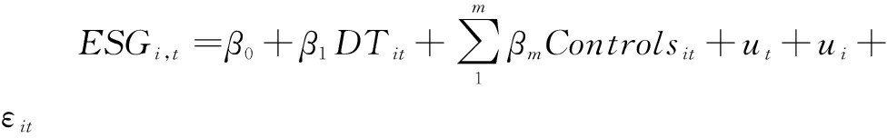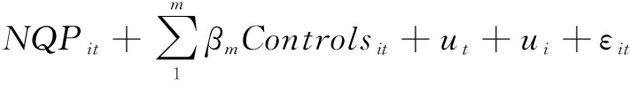 式中各变量符号含义如表1所示,其中,Controls代表控制变量,ut和ui分别代表时间与个体固定效应,ε代表残差,i和t分别代表企业与观测年份。