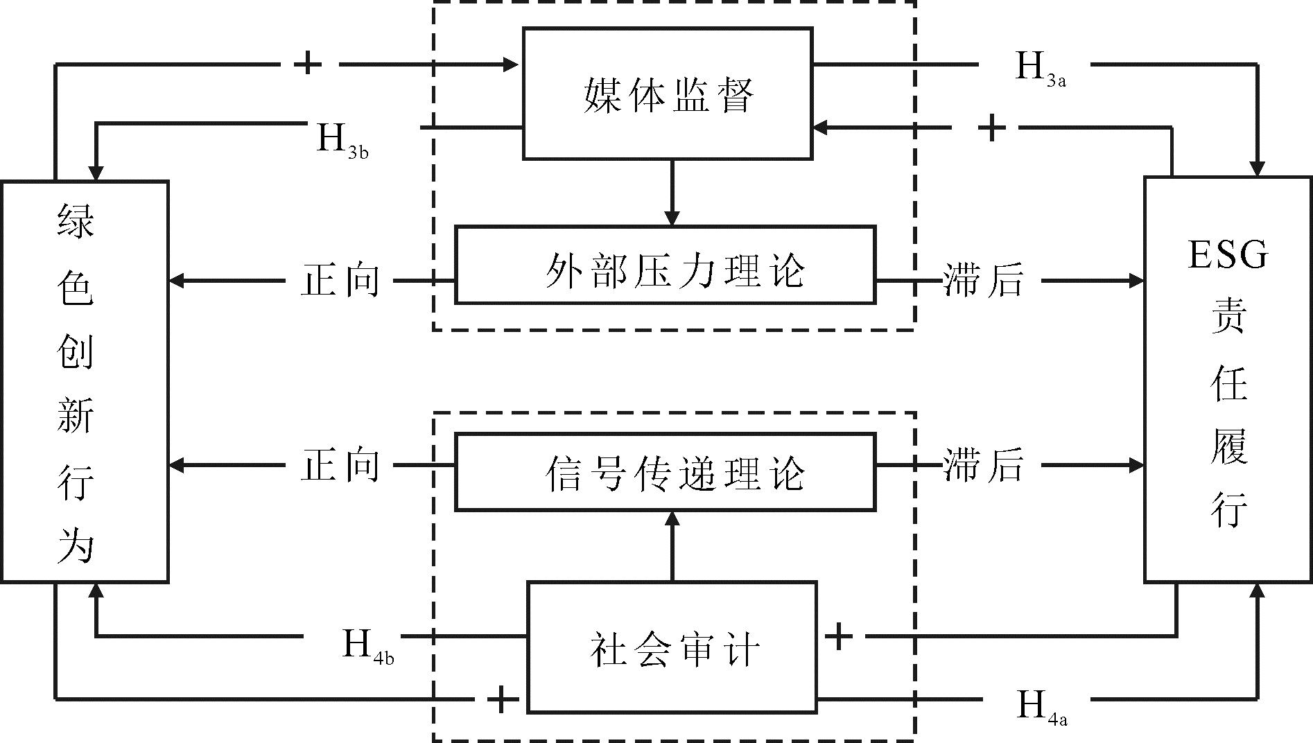 H4a:社会审计正向调节绿色创新行为对ESG责任履行的影响;