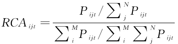 其中,RCAijt为城市i行业j第t年的比较优势指数;Pijt为城市i行业j第t年的专利数量。其中,专利数量采用2010—2022年上市公司申请的发明专利数进行测度,这是因为上市公司是地区中创新能力最强的市场主体,微观主体间的创新活动主要以上市公司为节点展开。此外,发明专利是企业优质创新成果的集中体现,能够较好地反映企业创新活动的实际价值。本文根据发明专利申请数据与国泰安数据库比对得到其所在城市,并根据《国民经济行业分类》(2017版)确定其所属行业。