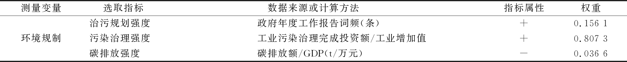 Table 1 Indicator system of environmental regulation