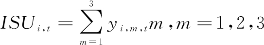 本文借鉴Zheng等[23]的思路,将中介变量产业结构转型划分为产业结构高度化与产业结构合理化。其中,产业结构高度化(ISU)主要反映产业结构由低水平向高水平转变的动态过程,本文采用产业结构层次系数表示,计算过程如式(2)所示;产业结构合理化(ISR)反映产业间协调程度与资源有效利用程度,采用泰尔指数衡量[24],计算过程如式(3)所示。泰尔指数越接近0,表示产业结构越合理。