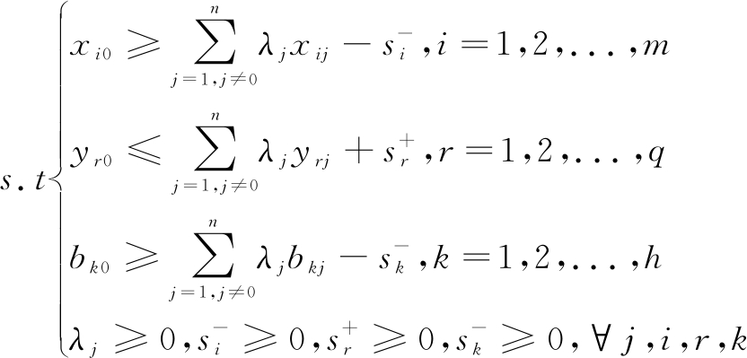 分别为投入、期望产出、非期望产出的松弛变量;λ为权重向量。
