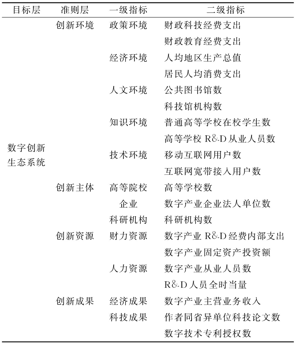 表1 数字创新生态系统评价指标体系