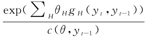 其中,Yt为t期网络,Yt-1为t-1期网络;P(Yt=yt|Yt-1=yt-1,θ)表示真实网络y在随机网络集合Y中出现的概率;c(·)为标准化常数;H为影响该网络形成的属性;gH(·)为该属性变量的数学表达式;θH为该属性变量的系数;θ为θH形成的系数向量。