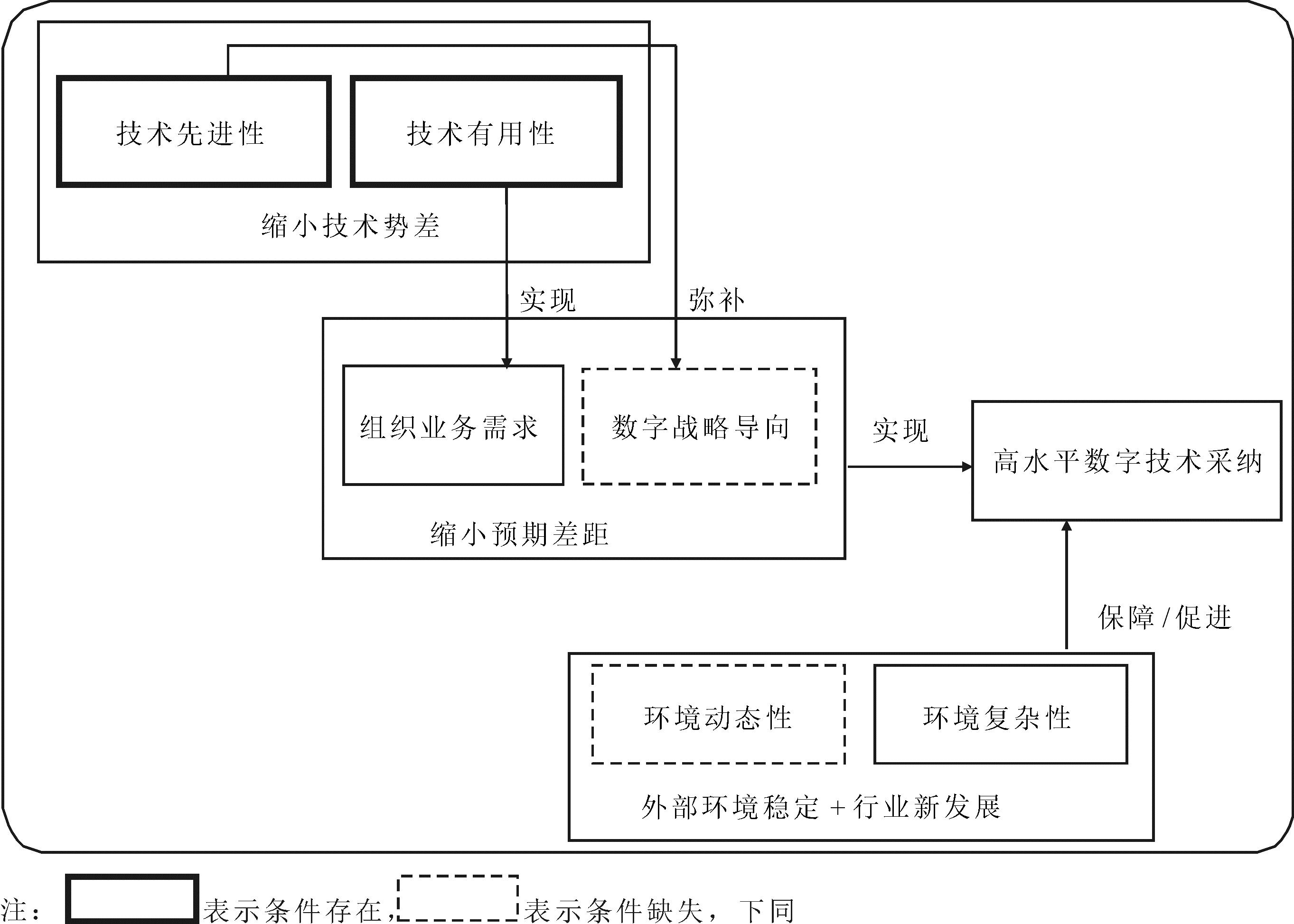 图2 技术牵引驱动型高水平数字技术采纳组态路径