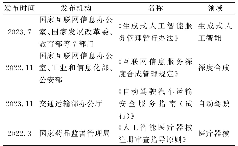 表1 部门层面人工智能治理的代表性制度举例