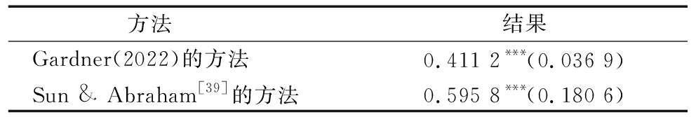 方法 结果Gardner(2022)的方法0.411 2***(0.036 9)Sun & Abraham[39]的方法0.595 8***(0.180 6)