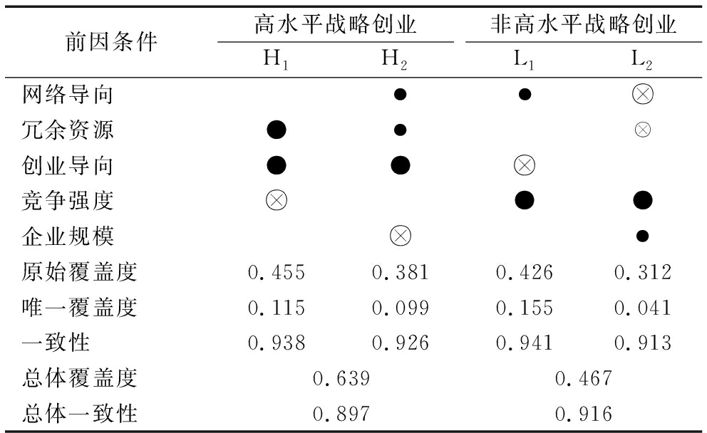 表8 战略创业前因组态结果
