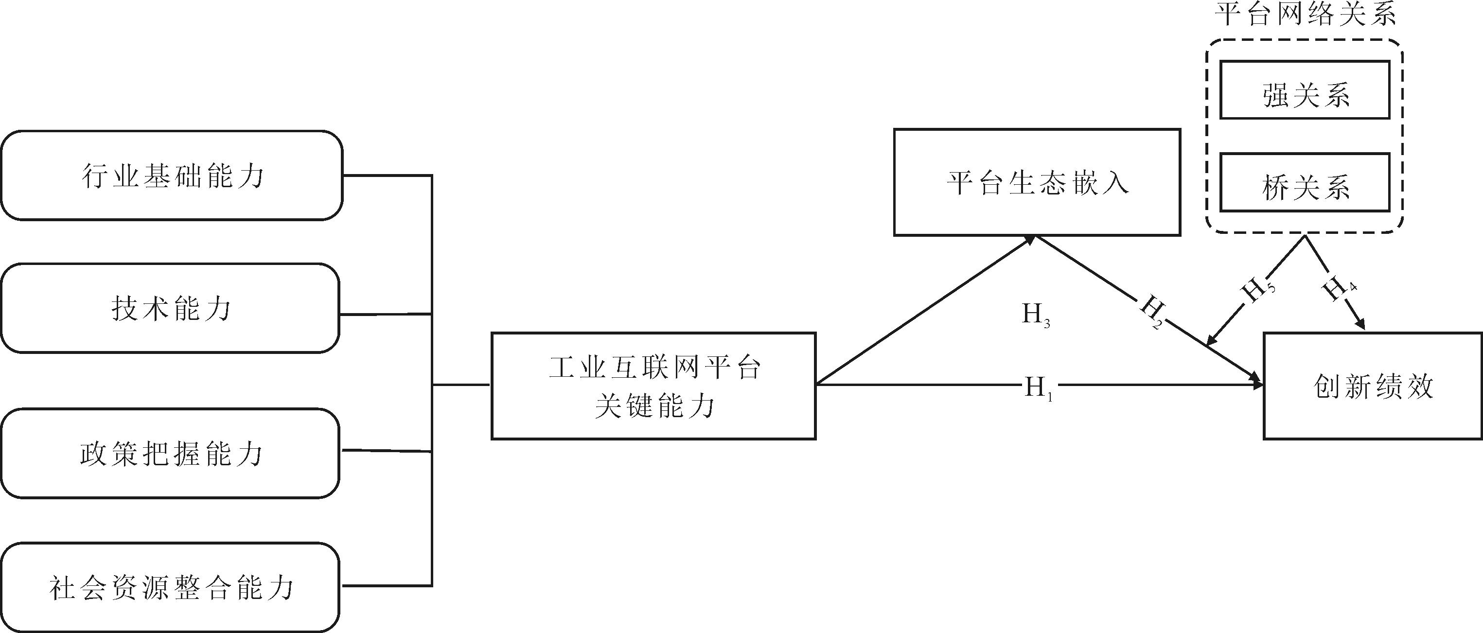 H1:工业互联网平台关键能力对参与企业创新绩效具有正向影响。
