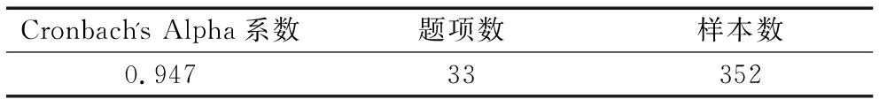 Cronbach's Alpha系数题项数样本数0.94733352