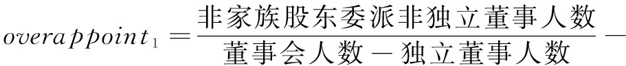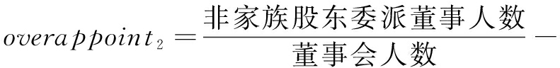其中,overratioit表示企业i在t年是否存在非家族股东超额委派董事的情况。对非家族股东超额委派董事,本文使用两种度量方式:一是在排除独立董事后,考察非家族股东在董事会中委派非独立董事的比例是否超过其持股比例(见式(4))。如果overappoint1大于0,则认为非家族股东存在超额委派董事的情况,overratio1取值为1,否则取值为0。二是未排除独立董事,考察非家族股东在董事会中委派董事的比例是否超过其持股比例(见式(5))。如果overappoint2大于0,则认为非家族股东存在超额委派董事的情况,overratio2取值为1,否则取值为0。Controlit表示控制变量集合,与基准回归中的控制变量一致。ηi、θt分别表示企业和年份固定效应,ζit为误差项。此外,本文还计算了企业层面聚类稳健标准误。
