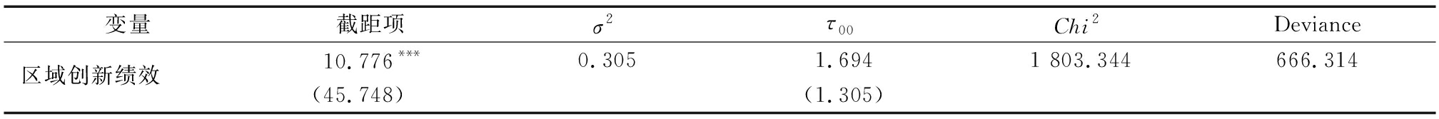 表6 替换被解释变量的区域创新绩效零模型检验结果