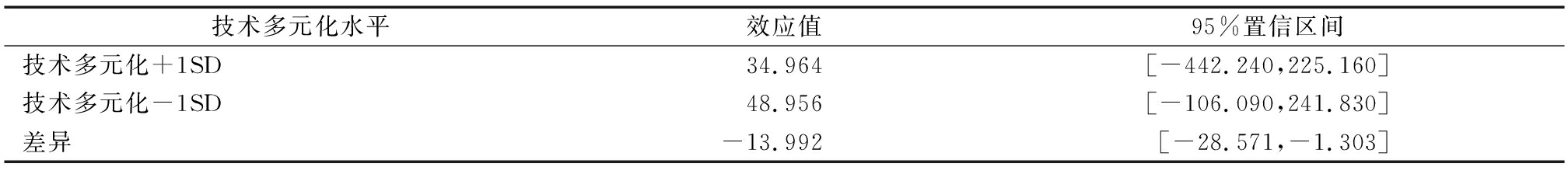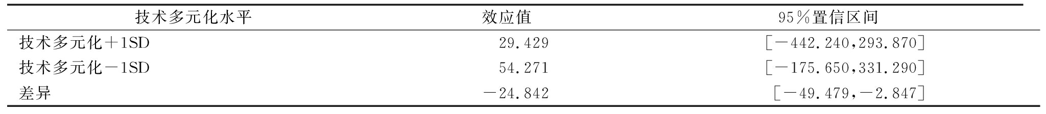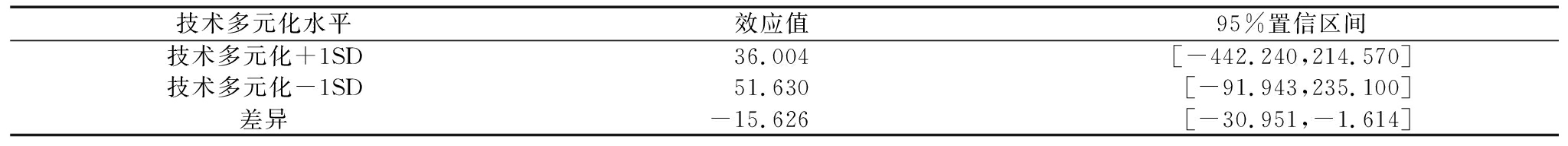 技术多元化水平效应值95%置信区间技术多元化+1SD29.429[-442.240,293.870]技术多元化-1SD54.271[-175.650,331.290]差异-24.842[-49.479,-2.847]