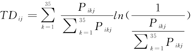 其中,TDij表示i年j区域技术多元化程度,Pikj表示第i年j区域在k技术领域的专利数量。