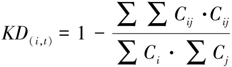 其中,Cij表示企业i在t年专利组合中技术类别i与j共同出现的次数,Ci和Cj分别代表技术类别i与j单独出现的次数。该指标能够有效反映企业专利组合中不同技术类别之间的关联程度,值越大表示技术距离越远。