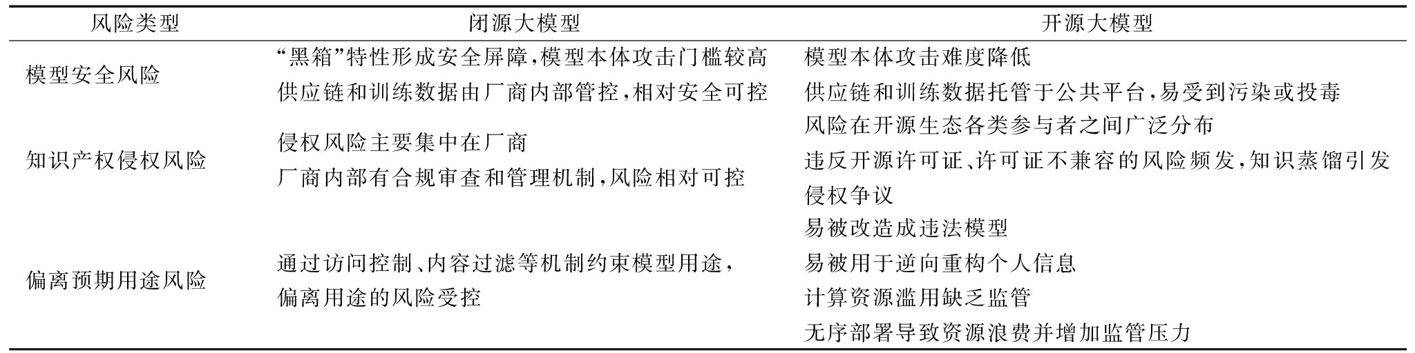 Table 2 Comparison of application risks between closed-source and open-source large models
