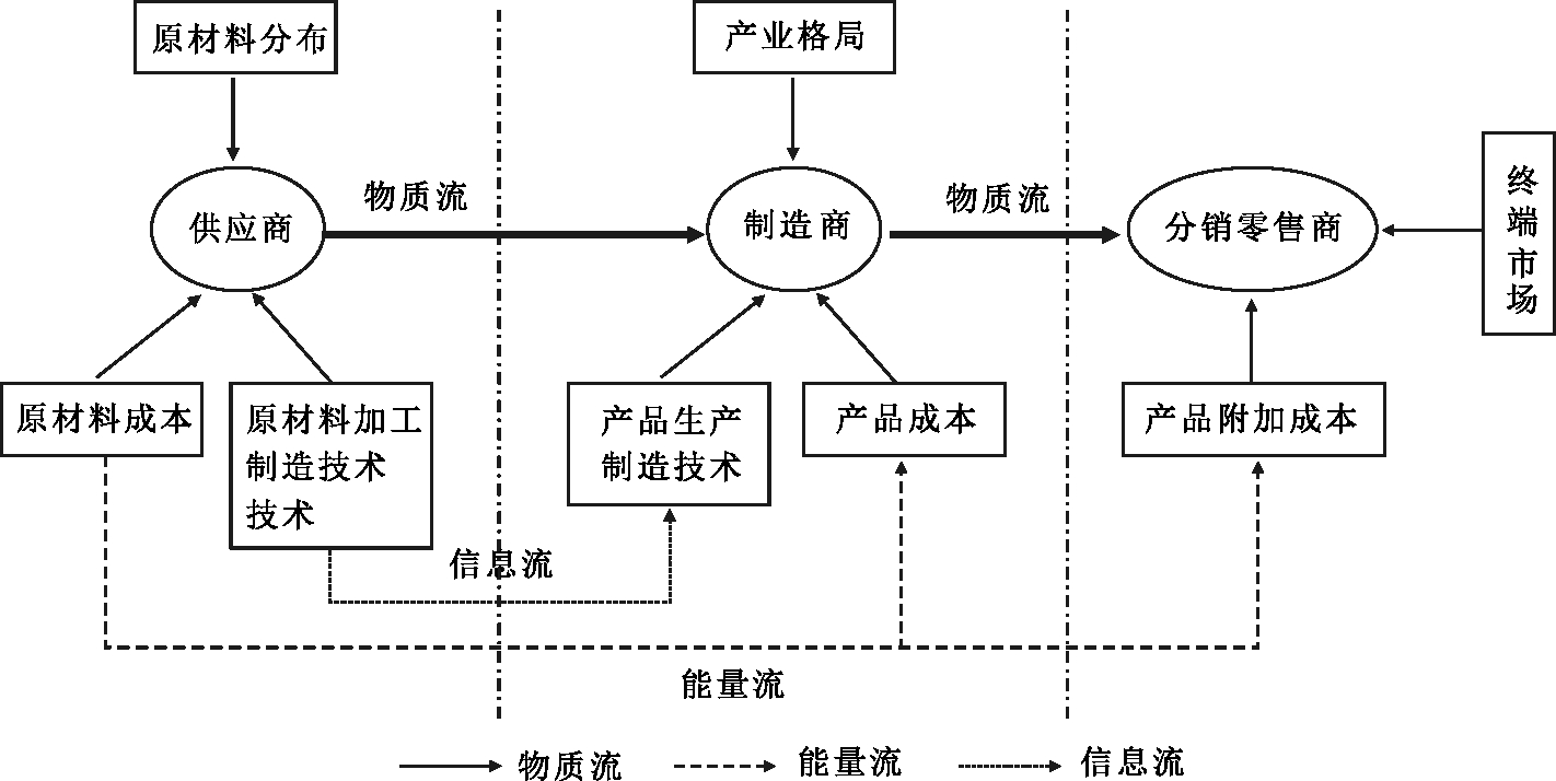作为社会分工发展的产物,产业是一个具有相对完备组织结构的系统体系。在产业发展过程中必然引起物质、能量、信息等流动,即伴随着物质流、能量流、信息流等产生,可将上述广延性的流统称为“广义流”。驱动广义流产生的力则可称为“广义力”。从物理上看,“力”是“流”产生的原因,而“流”是“力”产生的结果。产业系统通过这些“力”和“流”与外界发生物质能量交换。正如一种“力”可以引起多种形式的“流”,一种“流”也可以是多种“力”汇合加成所产生的效果之和。根据热力学原理,可将平衡态看作是非平衡定态中“力”和“流”趋于零的一种极限情况。将热力学理论引入产业系统,当产业系统的“力”与“流”相互作用之和为零时,产业系统处于平衡态,当相互作用之和不为零时,则处在非平衡态。这些相互作用是由产业系统中的“力”与“流”在时间和空间上广泛存在的差异所产生的,产业系统发展演化的根本动力是“力”与“流”的差异性,其差异性结果既可能使产业系统协同有序,也可能使其走向杂乱无序。长期以来,人们对产业的认识一直是各种比例的平衡和稳定发展,而对非均衡和不稳定的现象却未给予应有的重视。如普利高津的耗散结构理论虽然有力地说明了系统行为演化所经历的普遍范式,但缺失了完整表达系统行为运行的另一半,即当系统达到新的有序时,如何从“有序进入无序”的宏观流变。因此,产业平衡态理论就是要回答和解决产业运行发展如何从无序走向有序,再如何从有序走向无序的宏观流变。