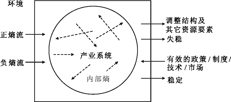 最终,在产业系统发展演变过程中,产业经济体系需要有效、正确地识别外界熵流的正负,通过与产业内其它元素以及产业外其它系统的非线性作用,吸入负熵、拒绝正熵、排出熵增,进而推动产业有序发展。