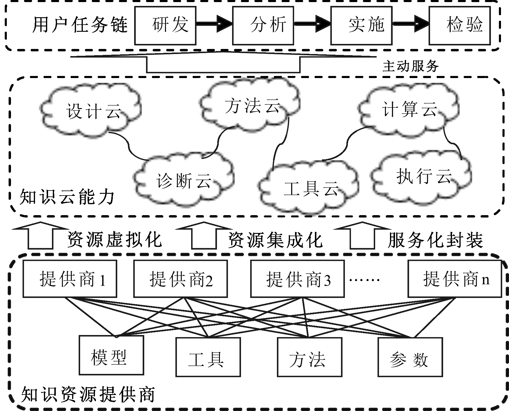 随着云计算技术不断发展,云平台应用云服务解决实际问题成为大势所趋。刘乃强等[3]结合知识管理与SAAS模式,对图书馆云计算公共知识服务云平台进行了深入研究,发现针对SAAS知识服务模式的研究相对薄弱。侯永东等[4]提出一种可扩展的集成化云平台监控机制,指出其能在平台资源共享环节实现实时监控功能,但缺乏对资源应用处理模型的研究。胡刃峰等[5]就云平台促进产学研隐性知识共享,提出信任、沟通和激励三大机制,但对显性知识及显性与隐性知识转化过程中的具体问题关注较少。
