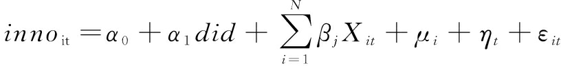 根据上述分析,本文基于PSM-DID进行估计:①利用PSM对实验组匹配相应的控制组;②在第一步的基础上进行DID分析。具体模型如下: